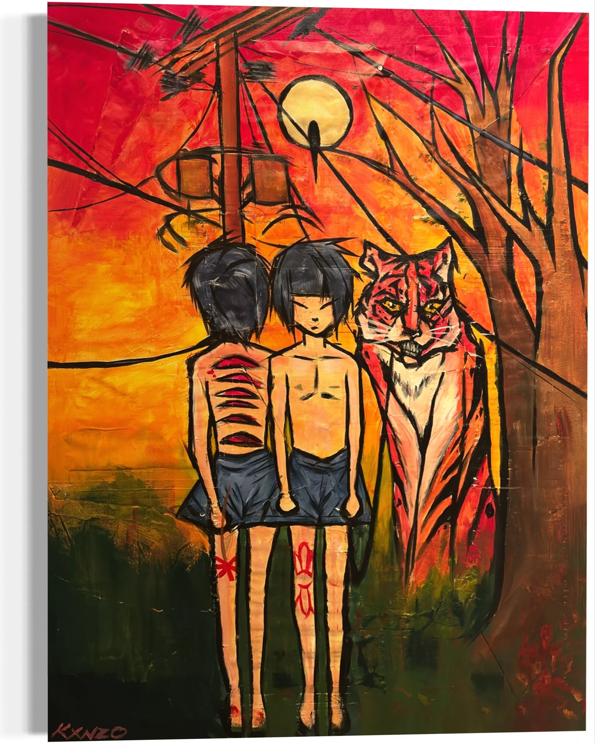 I was inspired by the legend of the first tiger, once a boy, whipped until the flesh welled and broke, until pain became hide and roar. His suffering was so complete that he transformed—his scars, transfigured.
